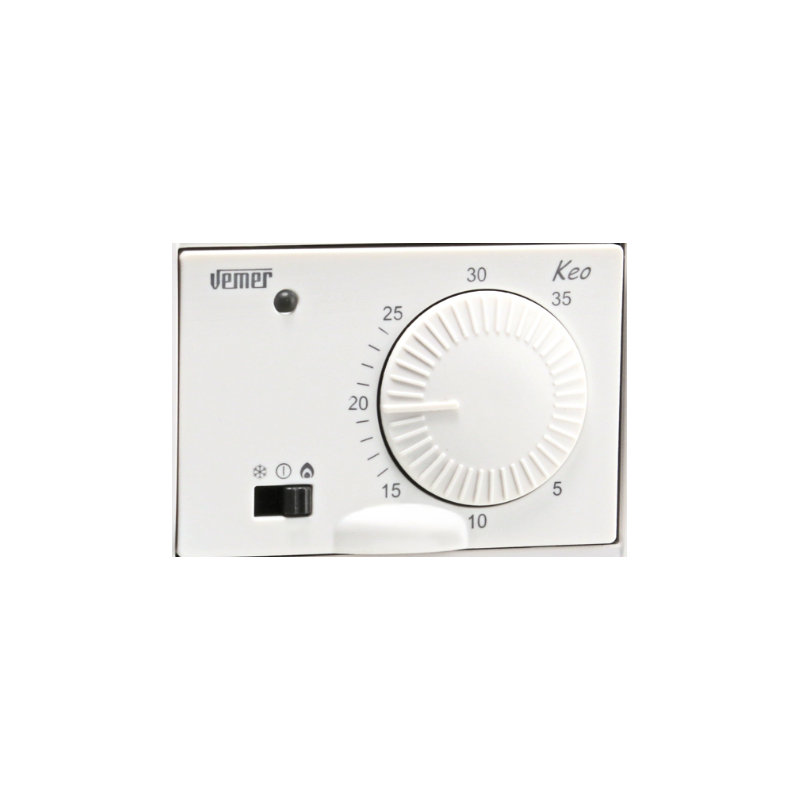 Room thermostat Vemer to adjust the temperature of boilers and air conditioners. Battery power. Compatible with Bticino, Vimar, Gewiis and Hail, only series with switches that are white and anthracite.