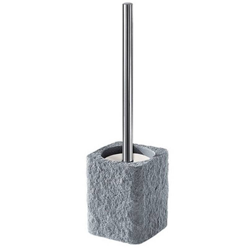 Gedy Aries toilet brush holder grey color with bristle tuft, with resin and sand structure and stainless steel receptacle, size: 10.5x10.5x40cm.