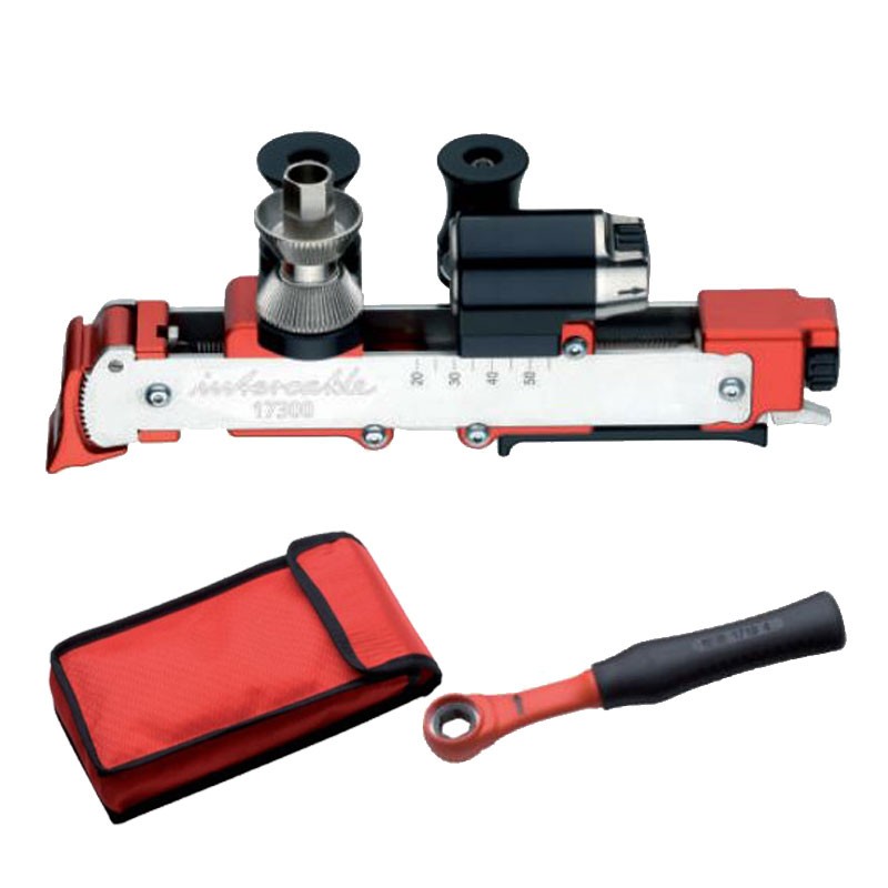 Cable stripper with quick clamping for Intercable high tensile polyethylene outer jacket and aluminum tube screen cables. Suitable for stripping external conduits and aluminum screen with thickness from 0 to 5 mm of MV cables with diameter from 16 mm to 54 mm.