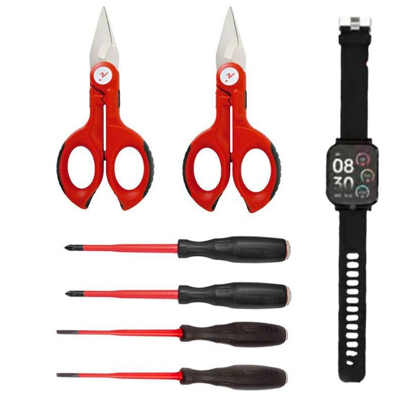 Kit Intercable 2 Stripping and Cutting Scissors 4 Slim Screwdrivers and Smartwatch Pro AO2509