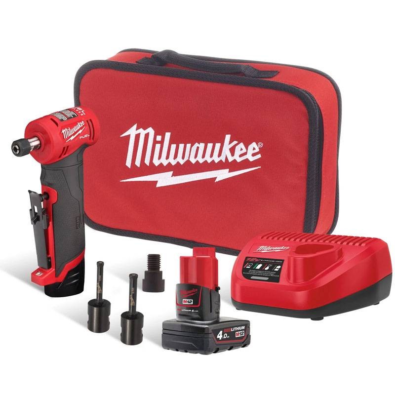 Milwaukee M12 Fuel Angle Die Grinder Kit consisting of: