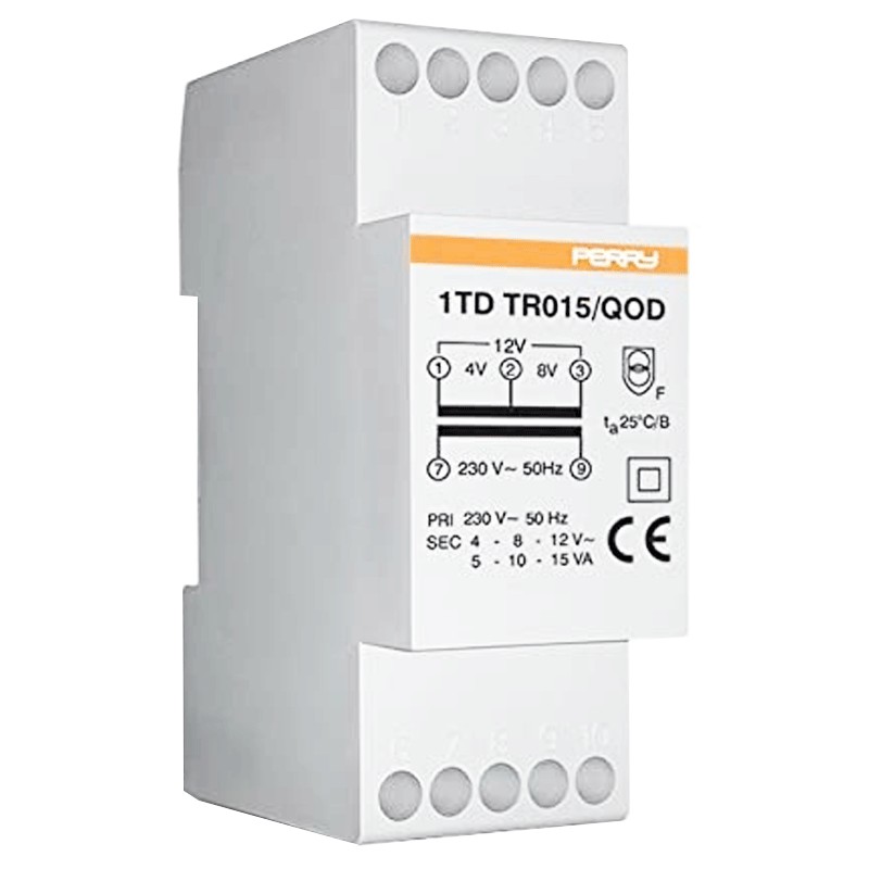 Perry transformer 15VA outputs 4-8-12V 2 DIN 1TDTR015/QOD