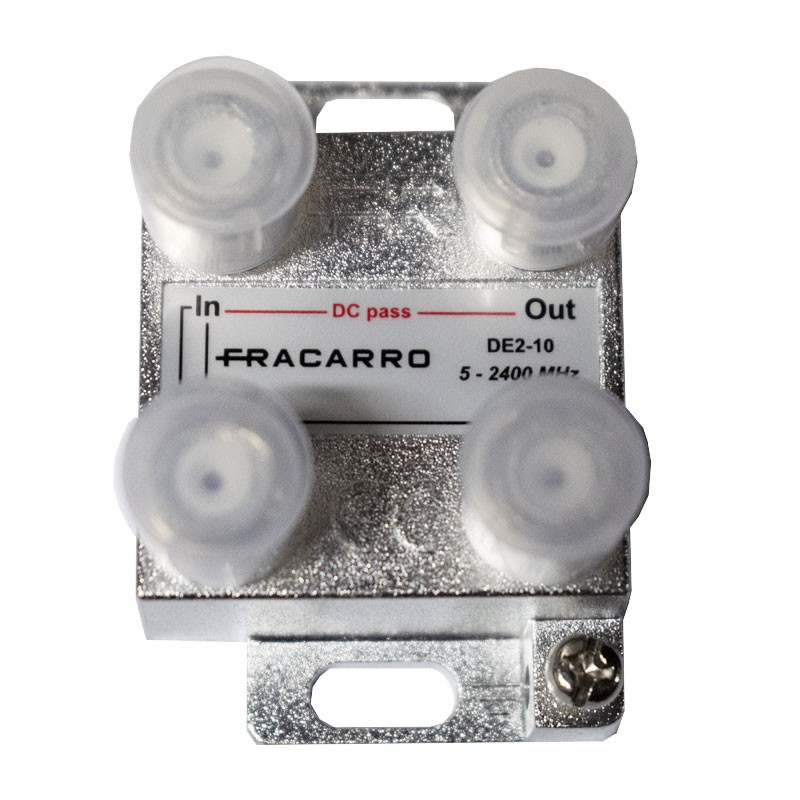 Fracarro DE2-10 2-way vertical extender, with 10dB attenuation and F connector in TV and Satellite band (5-2400MHz).