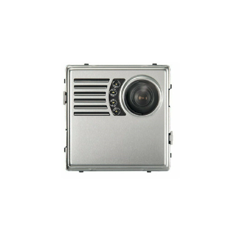Urmet Sinthesi S2 module in anodized aluminium, polished steel colour, with 50 Hz colour camera unit.