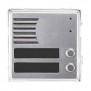 Urmet Sinthesi S2 module in polished steel anodized aluminium, prearranged for door unit with 2 call buttons. The module provides for the use of door unit 1145/500 and features uniform green LED name tag lighting.
