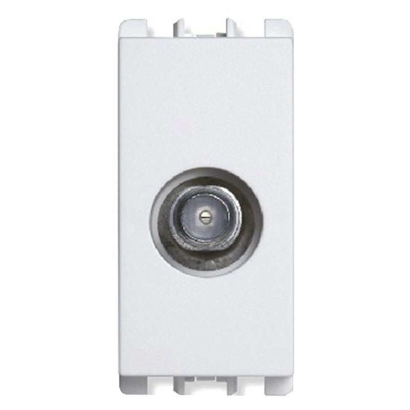 Urmet Simon Nea direct TV-SAT socket, frequency 5-2400 MHz, F female connector, attenuation 0.5 dB. Allows the passage of direct current and control signals (24V-500mA max) 1 module, white. To be applied on 10702N.G, 10703N, 10704N, 10706N, 10707 frames.