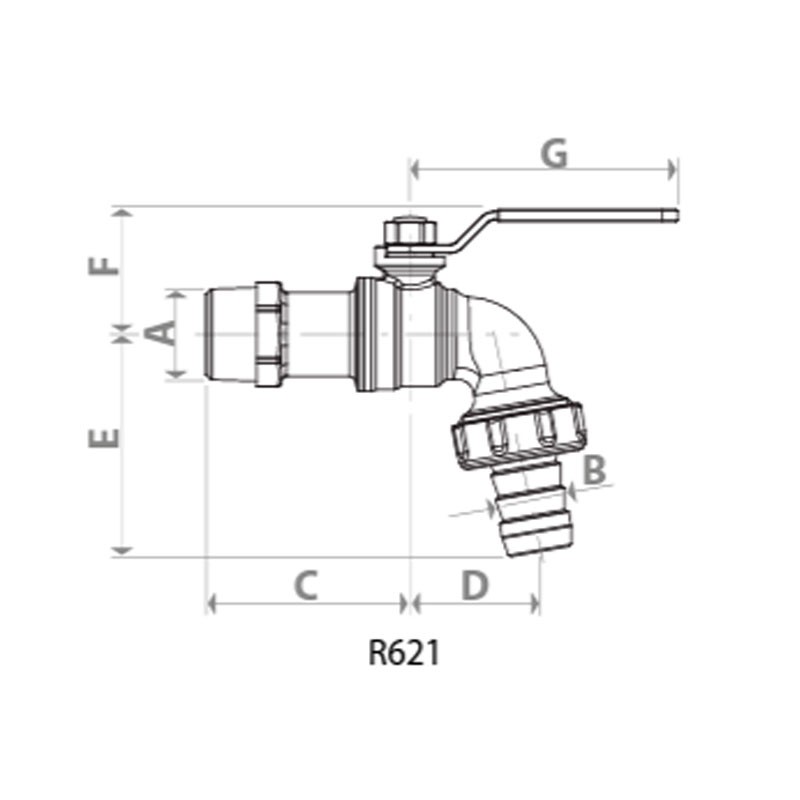 Giacomini dispensing tap series R621, in chromed brass, with male connection and hose nozzle. Connection size 3/4" - mouth 1".