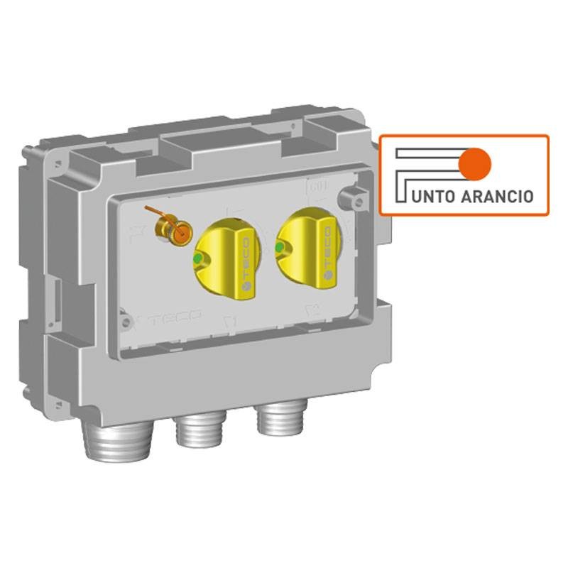 The gas manifold Teco K2.2 2-way 3/4 is designed to offer safe, modular, and inspectable gas distribution management in residential and commercial installations. Thanks to the presence of two EN331 ball valves integrated directly on the body and the Punto Arancio® pressure outlet, this manifold allows simplified control and maintenance of each line.