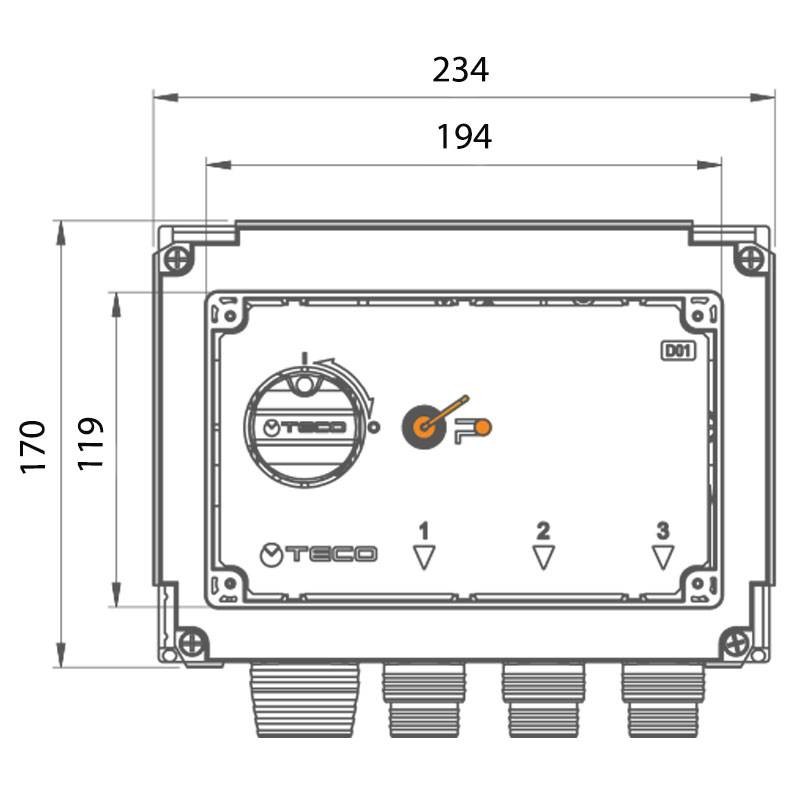 Recessed box: 235 x 170 x 85 mm, ventilated