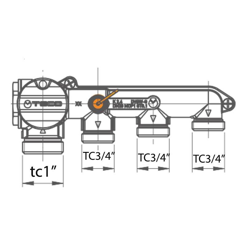 Teco Gas Manifold K2.4 with 3-way 3/4 interception K204DC10100
