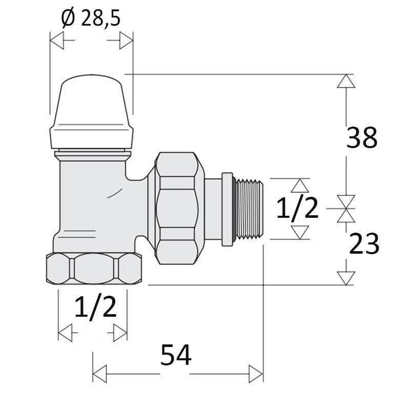 Radiator connection: Male/Female 1/2 inch square