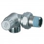 - Chrome-plated, right-angle lockshield, for radiators with connection for plastic and multilayer copper pipe, pre-gasketed tang, seal between tang and valve body made of HPF, double o-ring seal on stem, metal rebate plug and chrome-plated brass cap. Max operating temperature 95°C. Max operating pressure 10 bar.