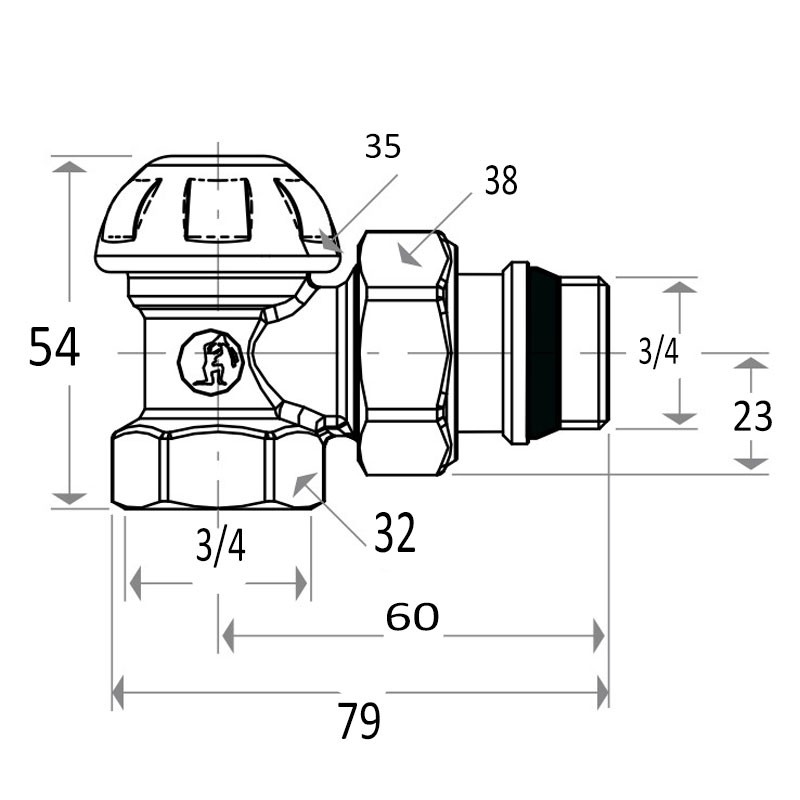 Giacomini Radiator Angle Lockshield Switch M/F 3/4 R14X034