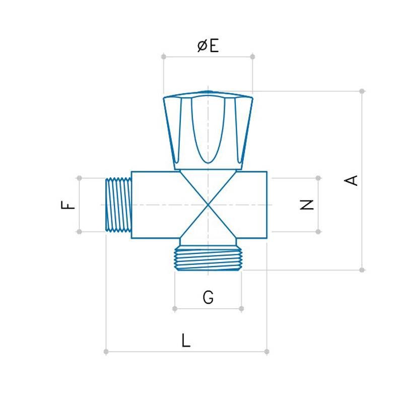 Luxor washing machine intermediate tap with a screw-down washing machine connection with the following features: