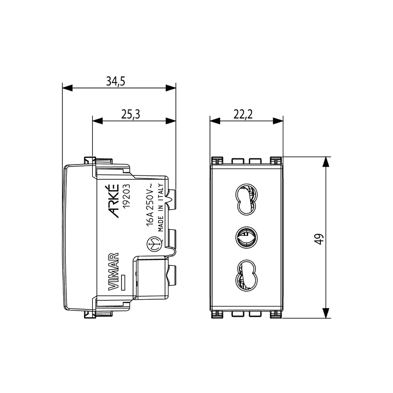 Vimar Arke two-way socket 10/16A 2P+E grey 19203