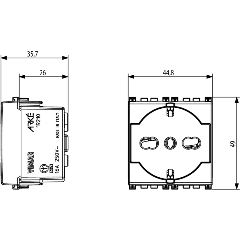 Vimar Arke universal socket 10/16A 2P+E grey 19210