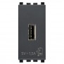 Vimar Eikon 5 V 1.5 A power supply unit for electronic devices, 1 USB output type A, power supply 120-230 V, frequency 50/60 Hz, colour grey, 1 module. To be applied on bracket 21613,21614,21617.