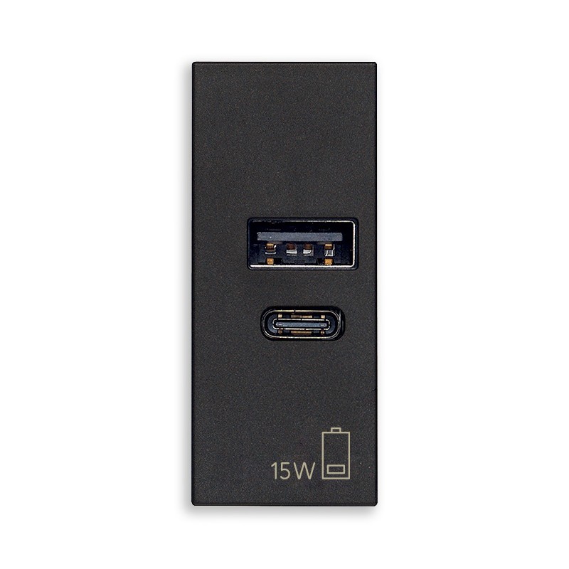 Vimar Linea USB Socket A+C 5V 15W 3A Black 30292.AC15G