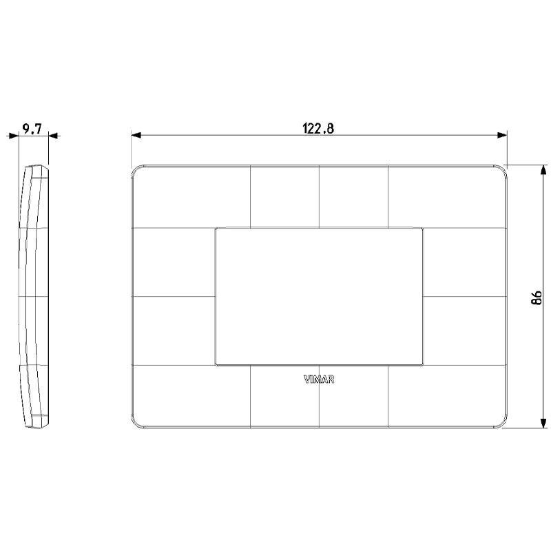 Vimar Plana Up plate 3 modules white 14653U.01 in technopolymer. Modern design, screw fixing on Plana 14613 3M frame, full compatibility with the entire Plana series.