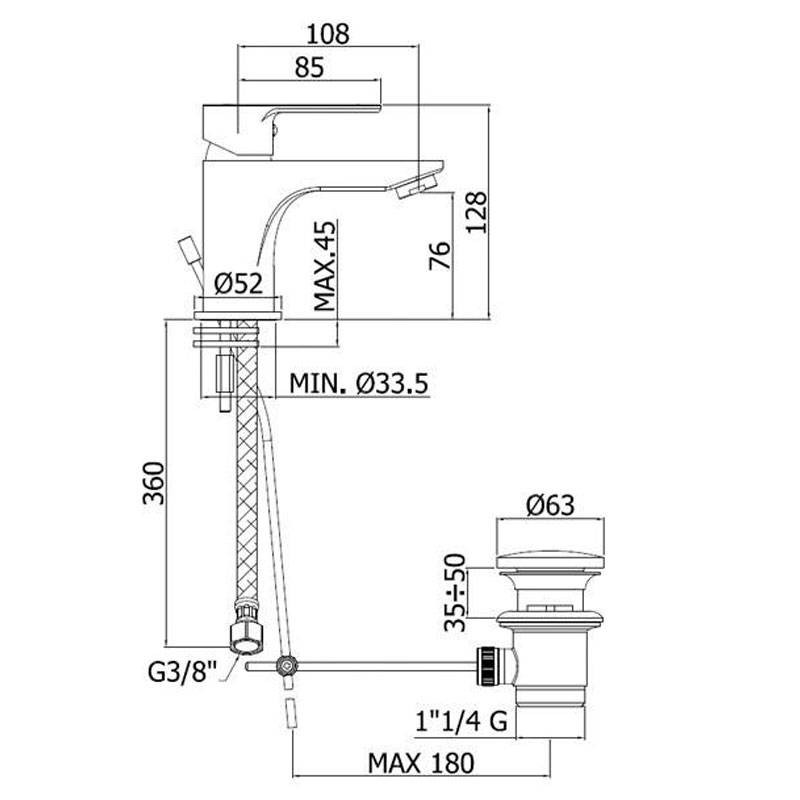 Paffoni Lime washbasin tap chromed automatic drain LM075CR