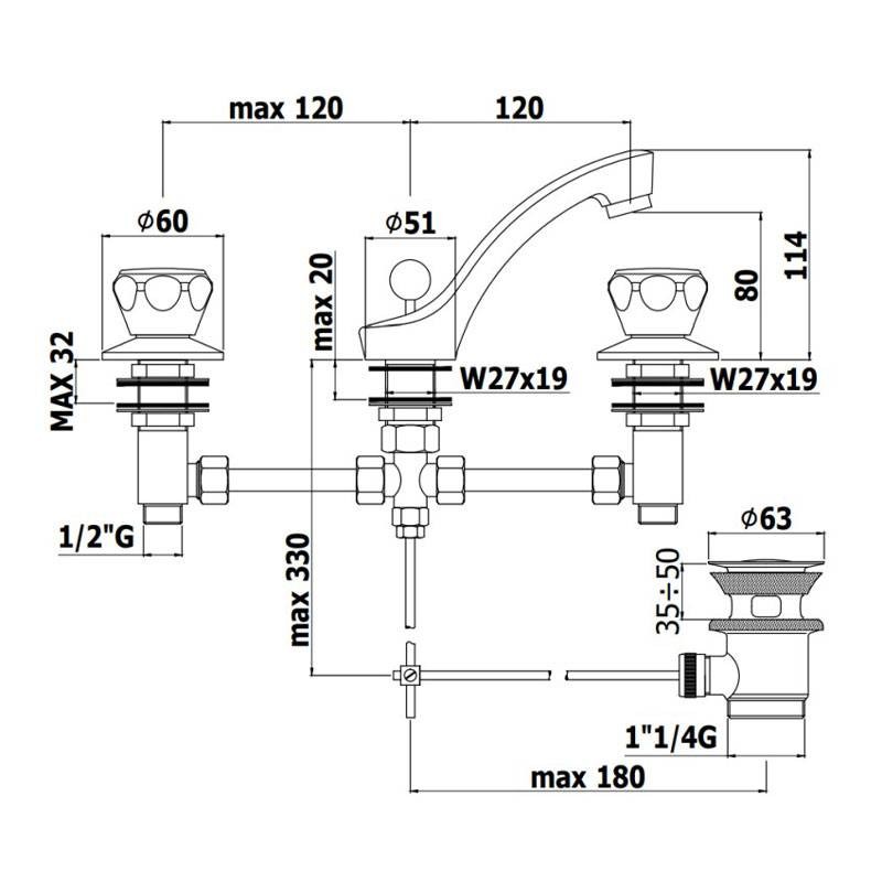Paffoni Iris retrò washbasin tap automatic waste chrome IRV065CR
