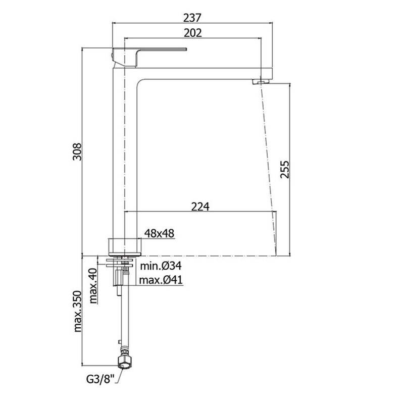 Paffoni Elle chrome-plated extended washbasin tap without waste (without drain) with the following features: