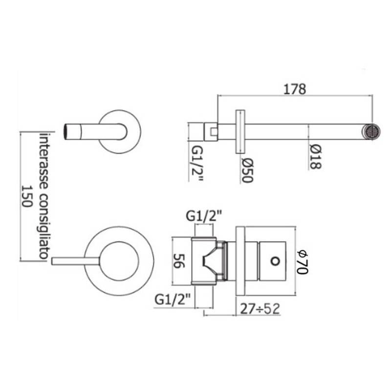 Paffoni Light chrome-plated recessed washbasin tap with the following features: