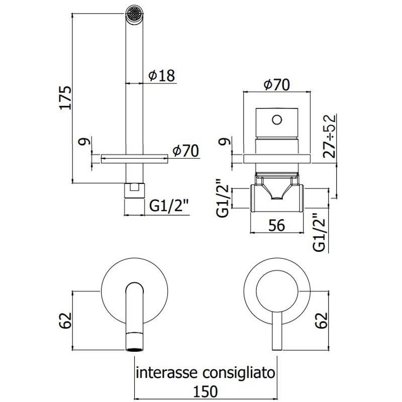 Paffoni Light recessed washbasin tap wall-mounted LIG006HGSP70