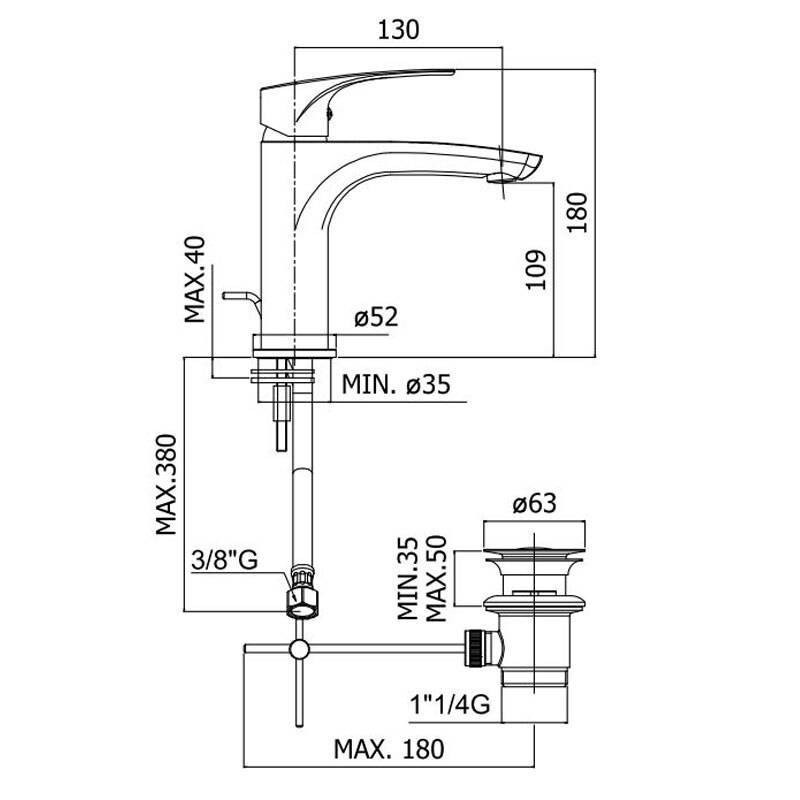 Paffoni Lime washbasin tap composed of: