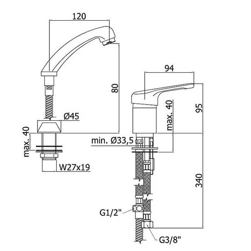 Paffoni Red washbasin tap extension 125 mm hoses 3/8 RED071CR120