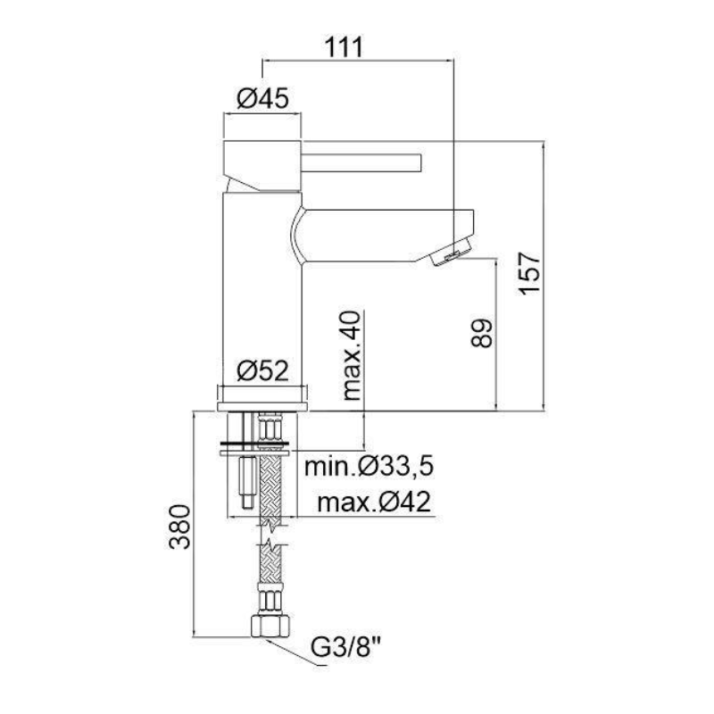 Paffoni Stickbasin sink mixer without drain plug color chrome with the following features: