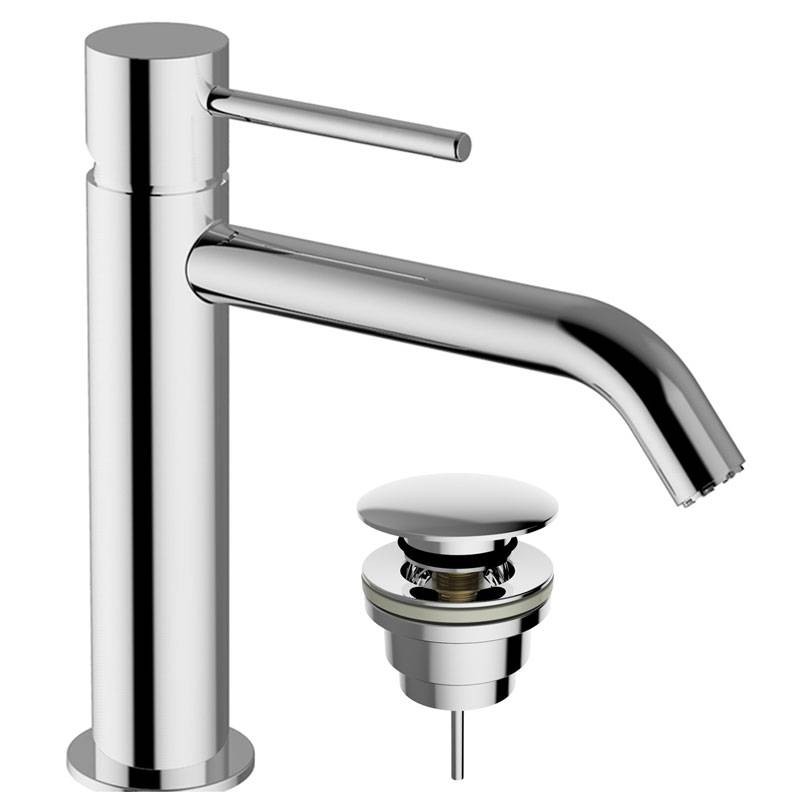 Teorema Jabil 25 medium washbasin tap with click clack waste, chrome version.