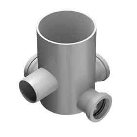 The low floor-level Bonomini inspection chamber is designed for efficient management of drainage in plumbing systems where it is necessary to channel multiple flow lines into a single point. The 4-way configuration, consisting of one outlet and three inlet connections, allows for an orderly and functional distribution of connections.