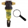 Each time the drain is operated, the system is activated: water filtration for washing + automatic draining + automatic backwashing. The conformation of the cartridge then tends to convey dirt to the bottom of the bowl through a cyclone effect thus facilitating the accumulation of the filtrate at the bottom of the bowl. Includes key disassembly/opening pot.