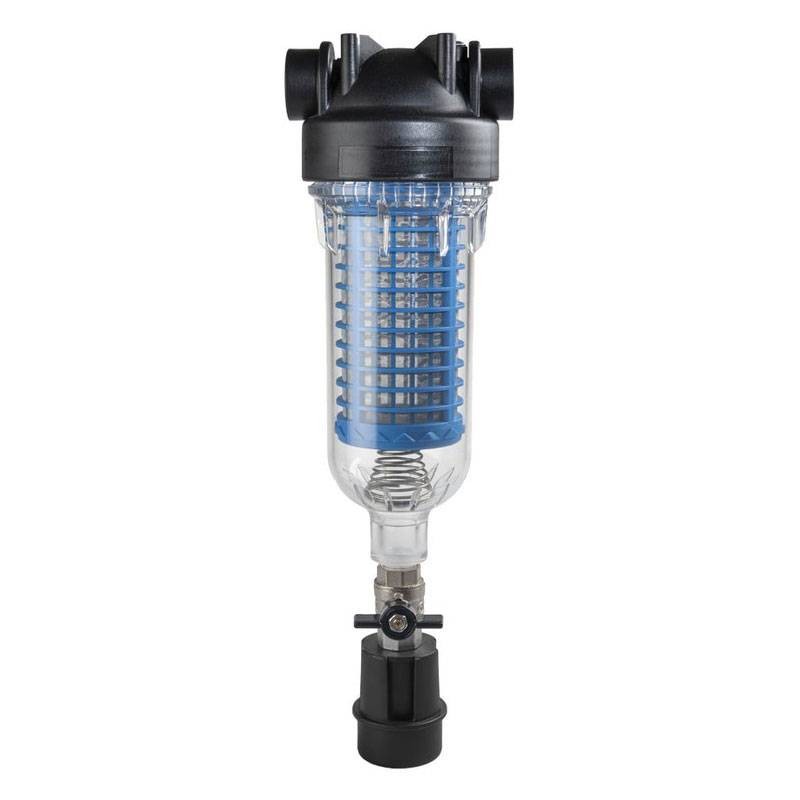Self-cleaning water filter with backwash system for effective sediment removal. Suitable for all OneFlow models. 1 FF header connection. Included in the package are adapters for ¾ and 1 ¼ connections.