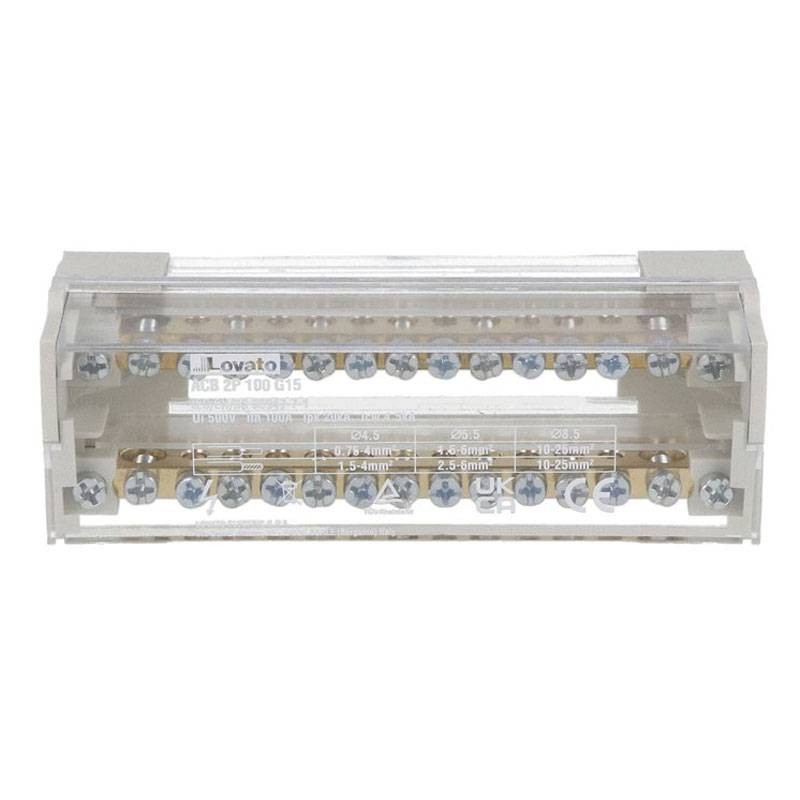 Lovato 125A 2P 15 terminal Power distribution block ACB2P125G15