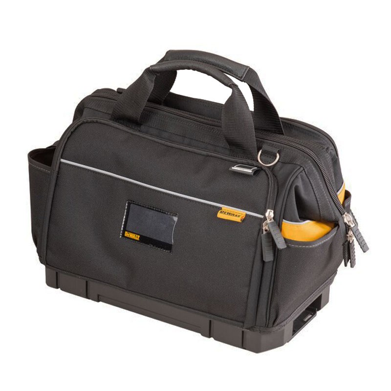 DeWALT tool bag in waterproof polypropylene with rectangular base. 600x1200 Den nylon construction, multiple interior and exterior pockets, removable dividers and ample space for power tools and batteries.