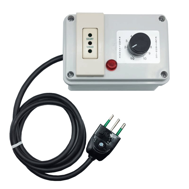 Supplied in a watertight box, the device is ready for immediate use thanks to its built-in power socket and cord with plug. Features potentiometer with knob and graduated scale, facilitating visual and manual speed adjustment, ideal for applications in professional and craft environments.