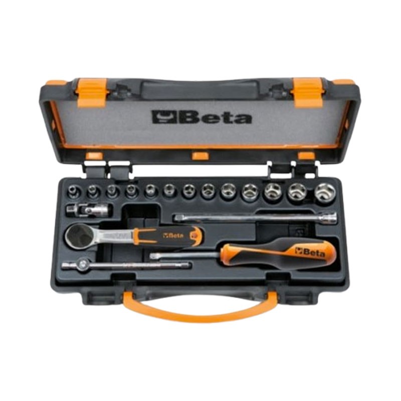 The Beta set is a complete and versatile solution for light tightening and maintenance work. Ideal for machine shops, technical workshops, electricians and installers, the set includes 1/4-inch socket wrenches made of high-quality chrome-plated steel, perfect for working on screws and bolts in tight spaces with maximum precision.