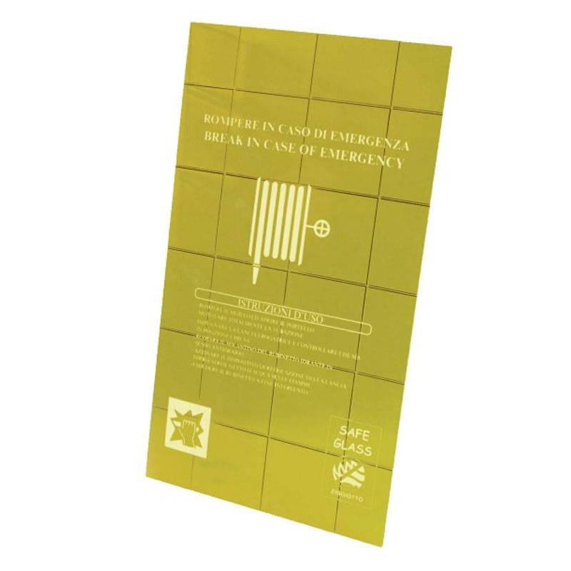 Ziggiotto frangible sheet is designed for use in fireproof boxes, where fast and safe fracture is required in emergency situations. The material is heat-resistant, UV-stabilized and complies with European fire regulations, with the following characteristics: