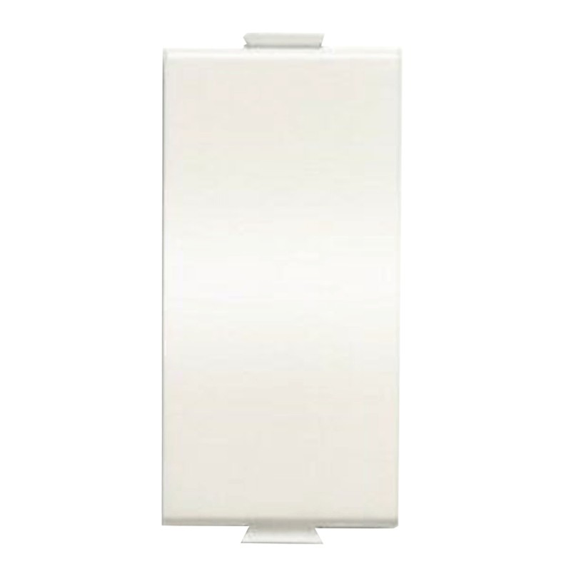 Falso Abb Chiara 1 módulo color blanco. También llamado poste falso o tapón, se utiliza para rellenar los espacios vacíos de los soportes. Ejemplo: en un soporte de 3 módulos con 1 zócalo central deben colocarse 2 módulos falsos.