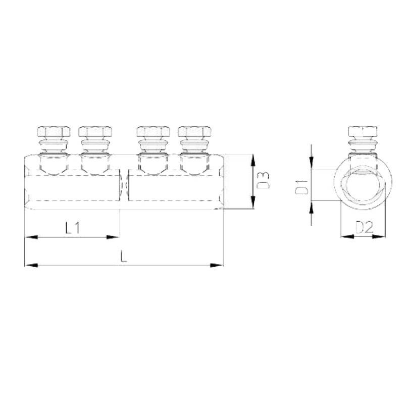 - Conector roscado para conductores de aluminio y cobre RM/SM/RE/SE, apto para uniones rectas y de transición.