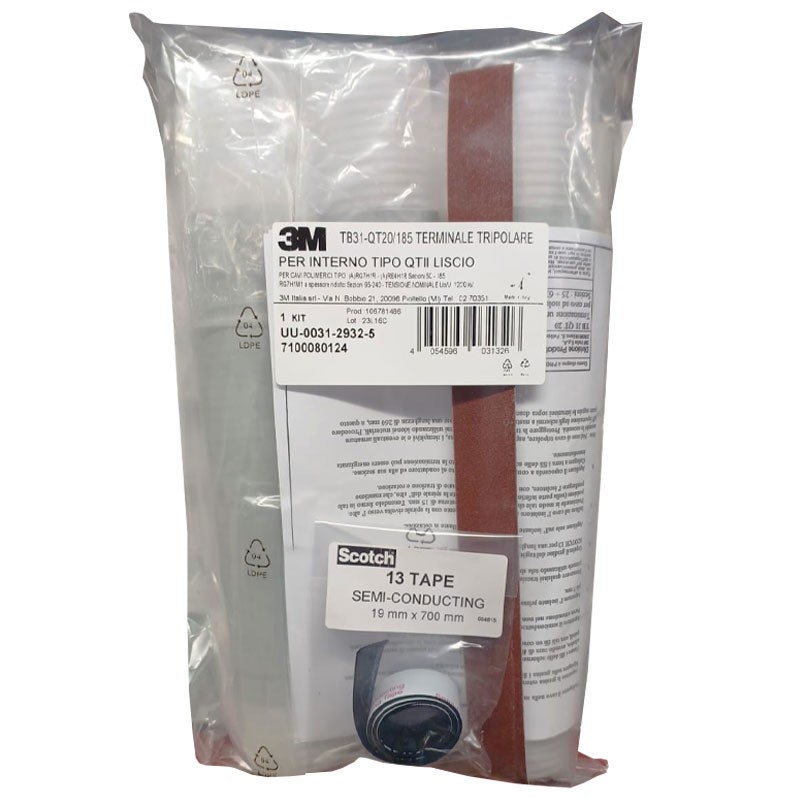 Terminal tripolar de media tensión 3M TB31-QT20/185 para cables unipolares de 3 unidades con las siguientes características: