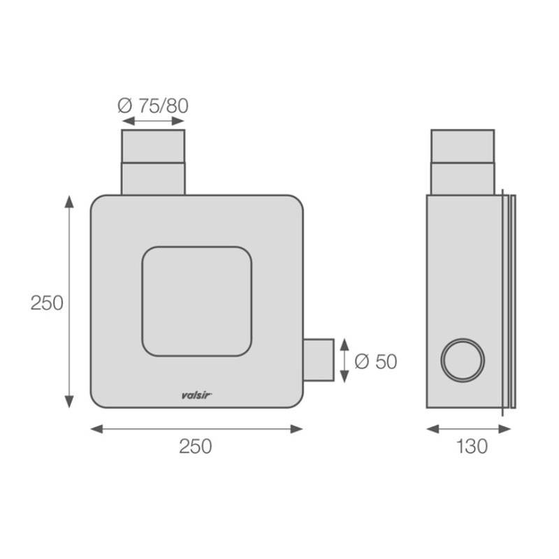 Salida ajustable Ø 75-80 mm, con opciones de montaje lateral o posterior