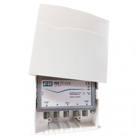 Fracarro MXST, mezclador de banda de TV y SAT para uso interno y buena pérdida de retorno; también puede utilizarse como desmezclador entrando en el conector MIX.