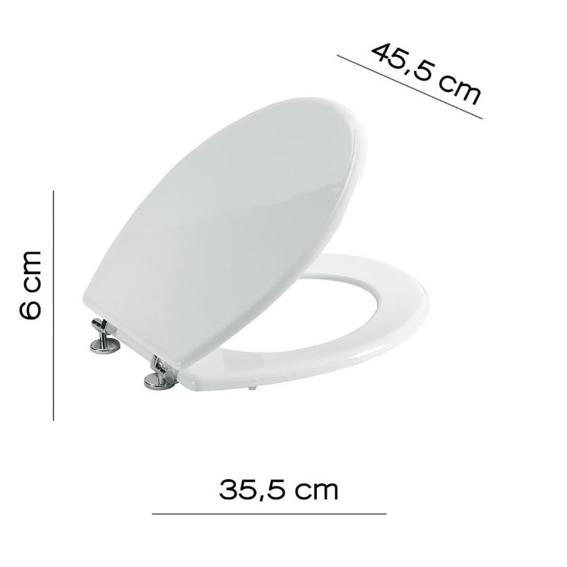 Tapa de inodoro Wc universal Gedy modelo Acquamarina, material en MDF con laca epoxi y bisagras en Cromall, color Blanco.
