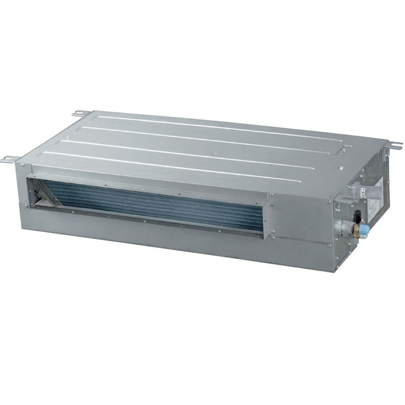 Aire acondicionado canalizado Haier Slim BP 30 Pa 2,5 kW R32 con Wi-Fi integrado, purificación UV-C, filtro de iones de plata, bomba de drenaje de condensado y clase energética A++. Diseño ultra-compacto y silencioso.