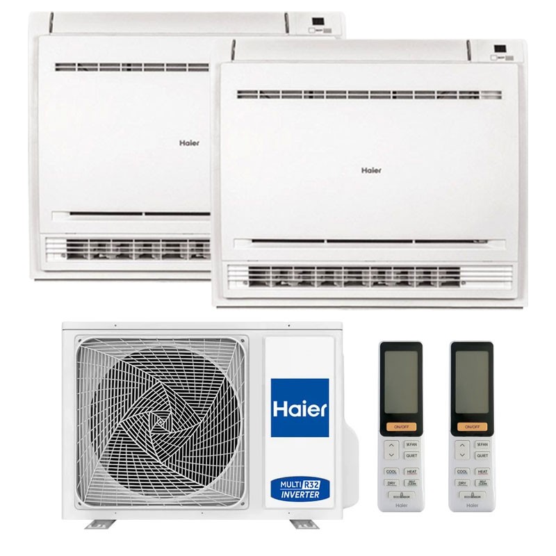 Aire Acondicionado Dual Console Inverter Haier 2.5kW+2.5kW 9000+9000BTU con GAS R32, clase energética A+++/A++, Kit compuesto por: