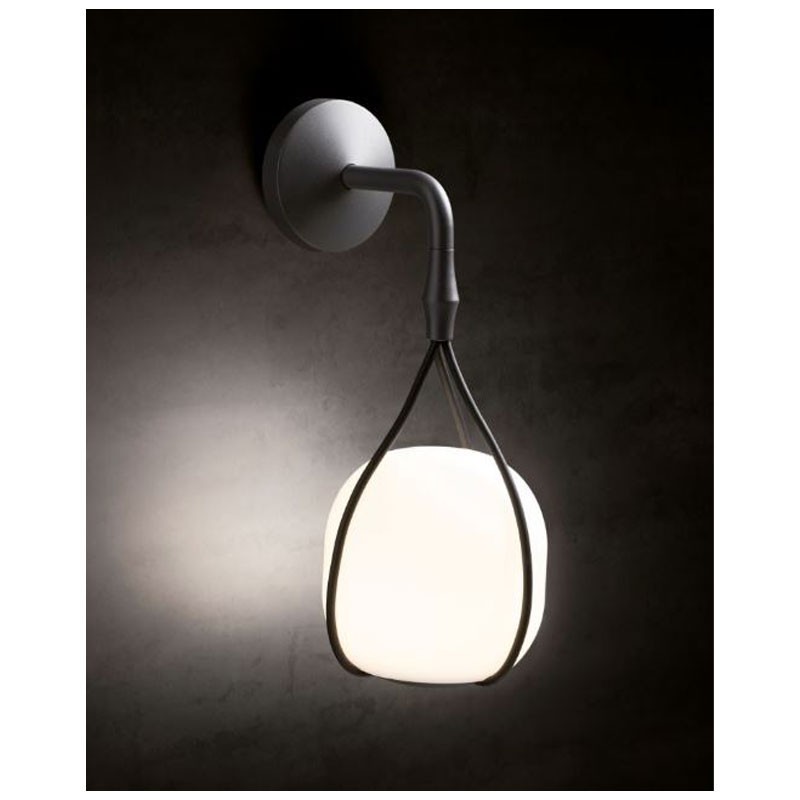 Fabricado en aluminio con acabado grafito, este aplique combina elegancia y durabilidad, adaptándose a diferentes contextos arquitectónicos.