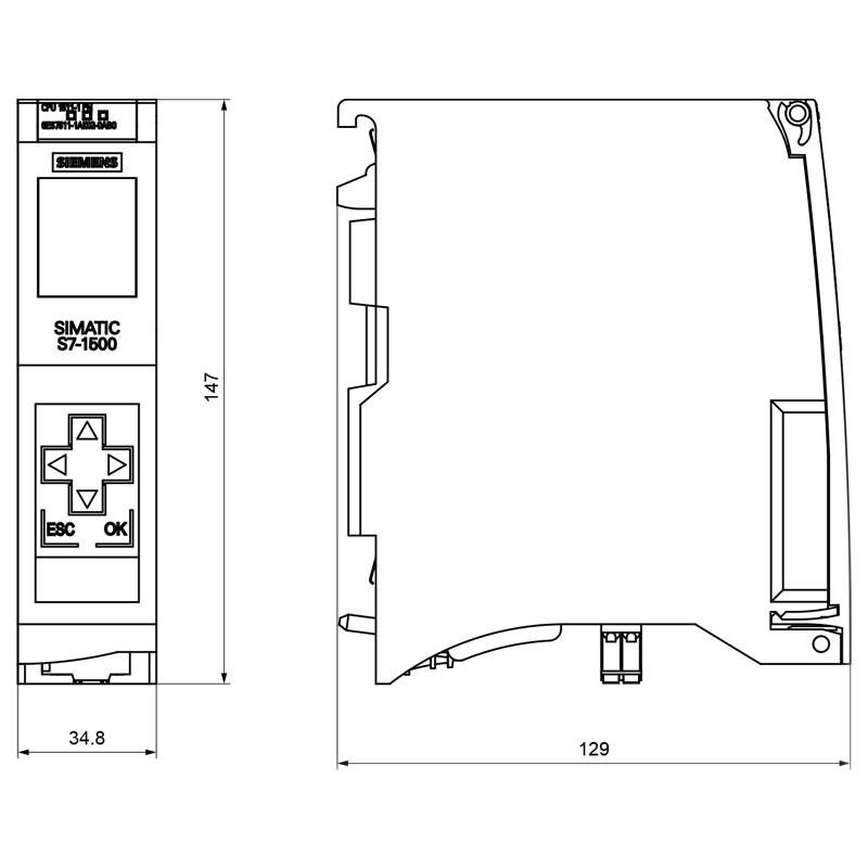 Unidad central CPU Siemens Simatic S7-1500 1511-1 PN memoria de trabajo de 150 KB para el programa y 1 MB para los datos, y con interfaz PROFINET IRT integrada con switch de 2 puertos con las siguientes características:
